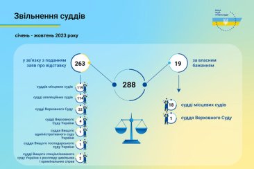 Протягом січня – жовтня 2023 року Вища рада правосуддя ухвалила рішення щодо звільнення 288 суддів.