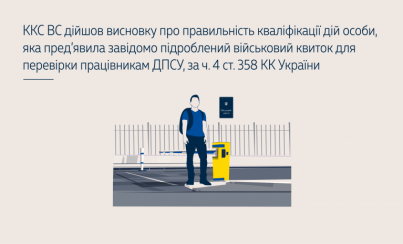 Відповідно до обставин кримінального провадження засуджений сам пред’явив завідомо підроблений військовий квиток для перевірки працівникам прикордонної служби, що утворює склад злочину, передбаченого ч. 4 ст. 358 КК України.