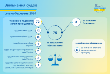За загальними обставинами звільнено 75 суддів, а саме: