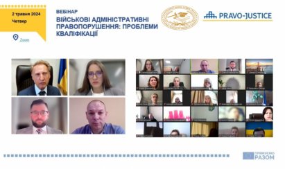 2 травня 2024 року Національна школа суддів України спільно з Проєктом ЄС "Право-Justice" провела онлайн-вебінар "Військові адміністративні правопорушення: проблеми кваліфікації" для суддів місцевих загальних та апеляційних судів із метою підвищення рівня їх кваліфікації.