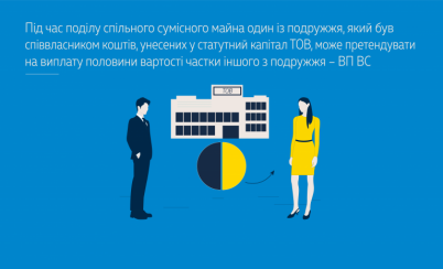 У разі внесення одним із подружжя як вкладу в статутний капітал ТОВ коштів, які є спільною сумісною власністю, вказане товариство стає їх власником. Натомість особа, яка внесла вклад у статутний капітал ТОВ, набуває право на частку учасника цього товариства.