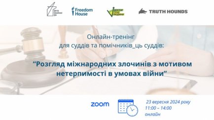 Цей тренінг має на меті забезпечити суддів необхідними знаннями та інструментами для ефективного розгляду справ, пов'язаних з мотивами ненависті у міжнародних злочинах, зокрема воєнних злочинах.